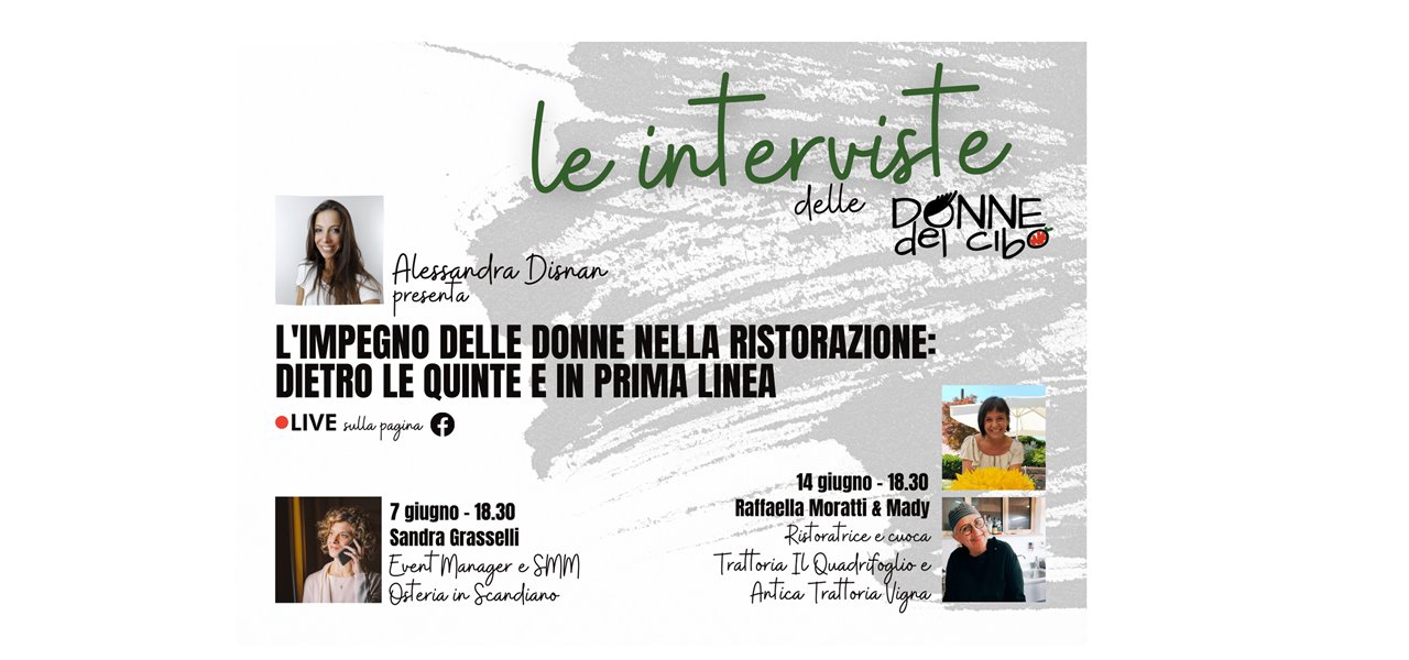 Ospite della prima diretta, in programma lunedì 7 giugno alle 18,30, sarà Sandra Grasselli, organizzatrice di eventi, social media manager e moglie di ristoratore che, avendo ricoperto diversi ruoli nell’Osteria in Scandiano (RE), conosce bene le dinamiche interne alle imprese di ristorazione.