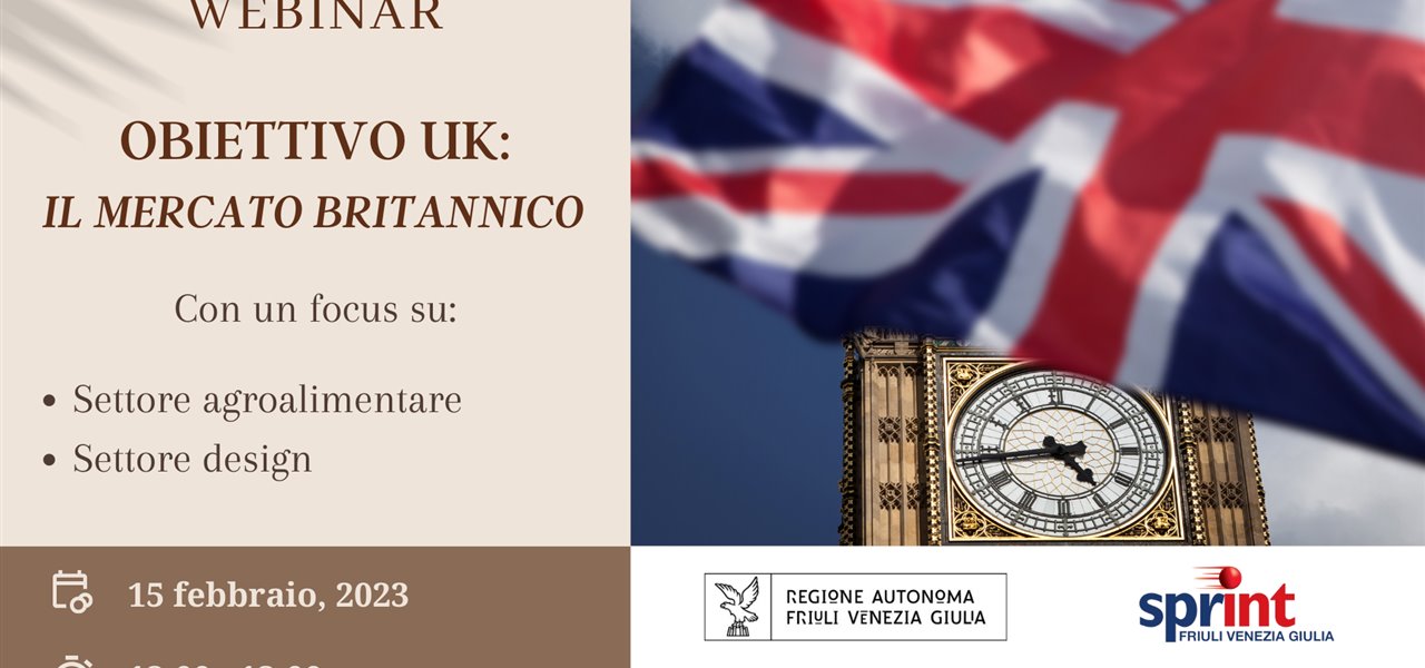 L’attuale contesto internazionale, caratterizzato da rischi politici al rialzo, elevata inflazione, misure protezionistiche, rincaro dei costi energetici e delle materie prime contribuisce a complicare le operazioni commerciali estere delle imprese italiane, impegnate a ricercare nuove destinazioni e a preservare le proprie quote di mercato all’estero. Lo SPRINT FVG, Sportello Unico per l’Internazionalizzazione della Regione Friuli Venezia Giulia, intende quindi fornire alle imprese informazioni utili in merito a mercati ad alto potenziale per il tessuto produttivo della Regione. Spiccata attenzione ai dettagli e interesse verso prodotti di design Made in Italy, nonché l’apprezzamento verso i prodotti agroalimentari italiani, sono fattori che contribuiscono a rendere il Regno Unito un mercato in grado di offrire alle imprese del Friuli Venezia Giulia interessanti opportunità commerciali. Per tale ragione, lo SPRINT FVG, in sinergia con la Camera di Commercio e dell’industria Italiana per il Regno Unito, ha organizzato un webinar di orientamento al mercato britannico dedicato alle imprese a vocazione internazionale del Friuli Venezia Giulia.
